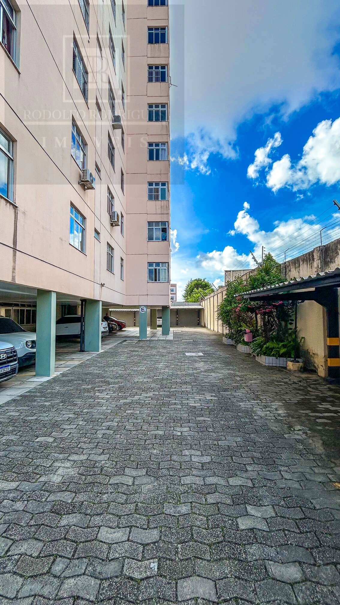 Edifício com área de estacionamento no pavimento térreo