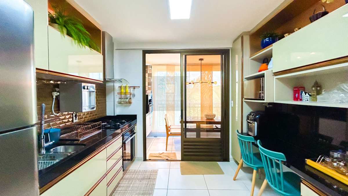 Varanda gourmet 2 ambientes com cozinha integrada