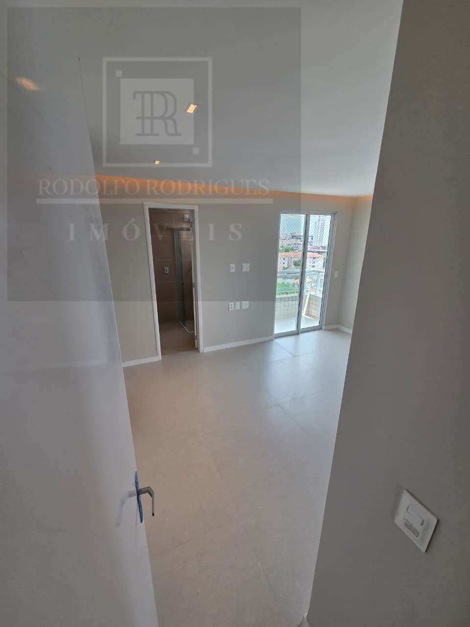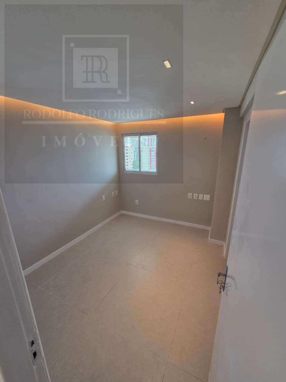 Ampla sala com teto rebaixado em gesso, sancas, iluminação embutida e piso em porcelanato novo